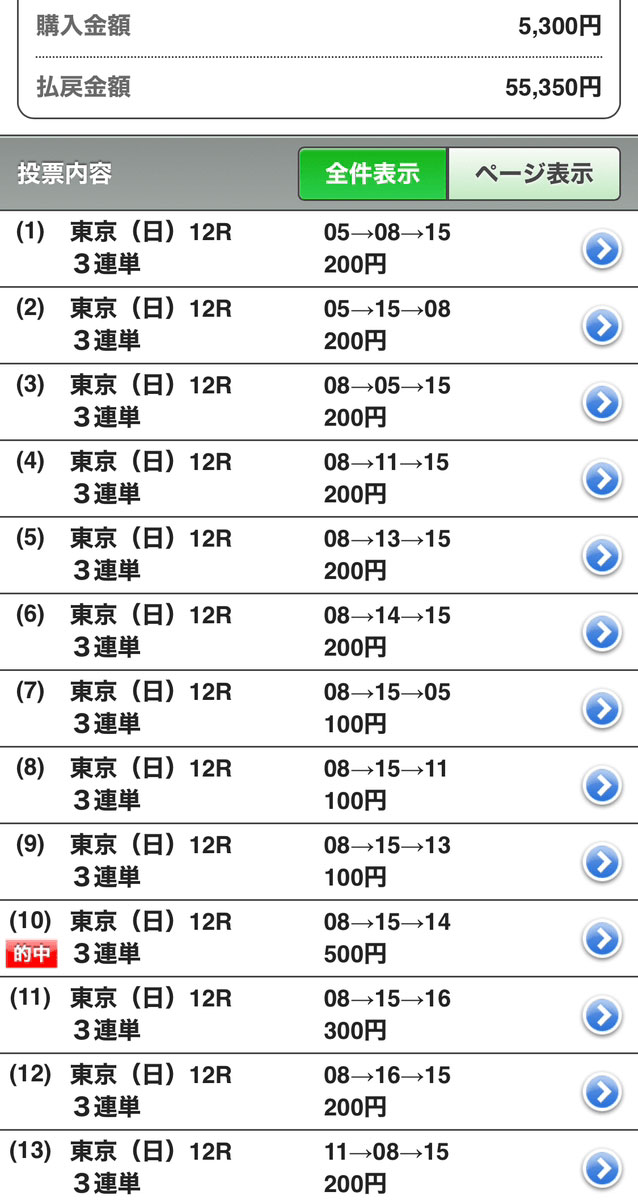 5万5350円的中&ジャパンカップはG1レースなので嬉しくてスクショをパシャリ…(笑)