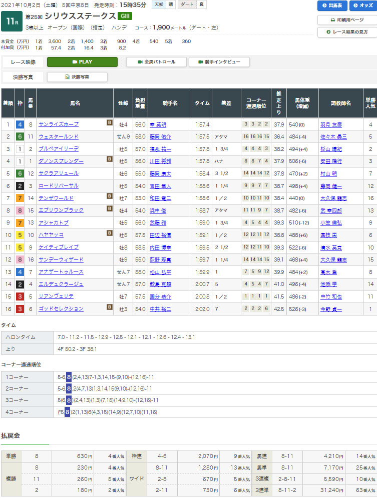 展開的には逃げのリアンヴェリテが崩れて先行馬2着、ウェスタールンドが上がり最速の脚を使いスーパー追い込みで3連単【8-11-2】312.4倍の払戻。