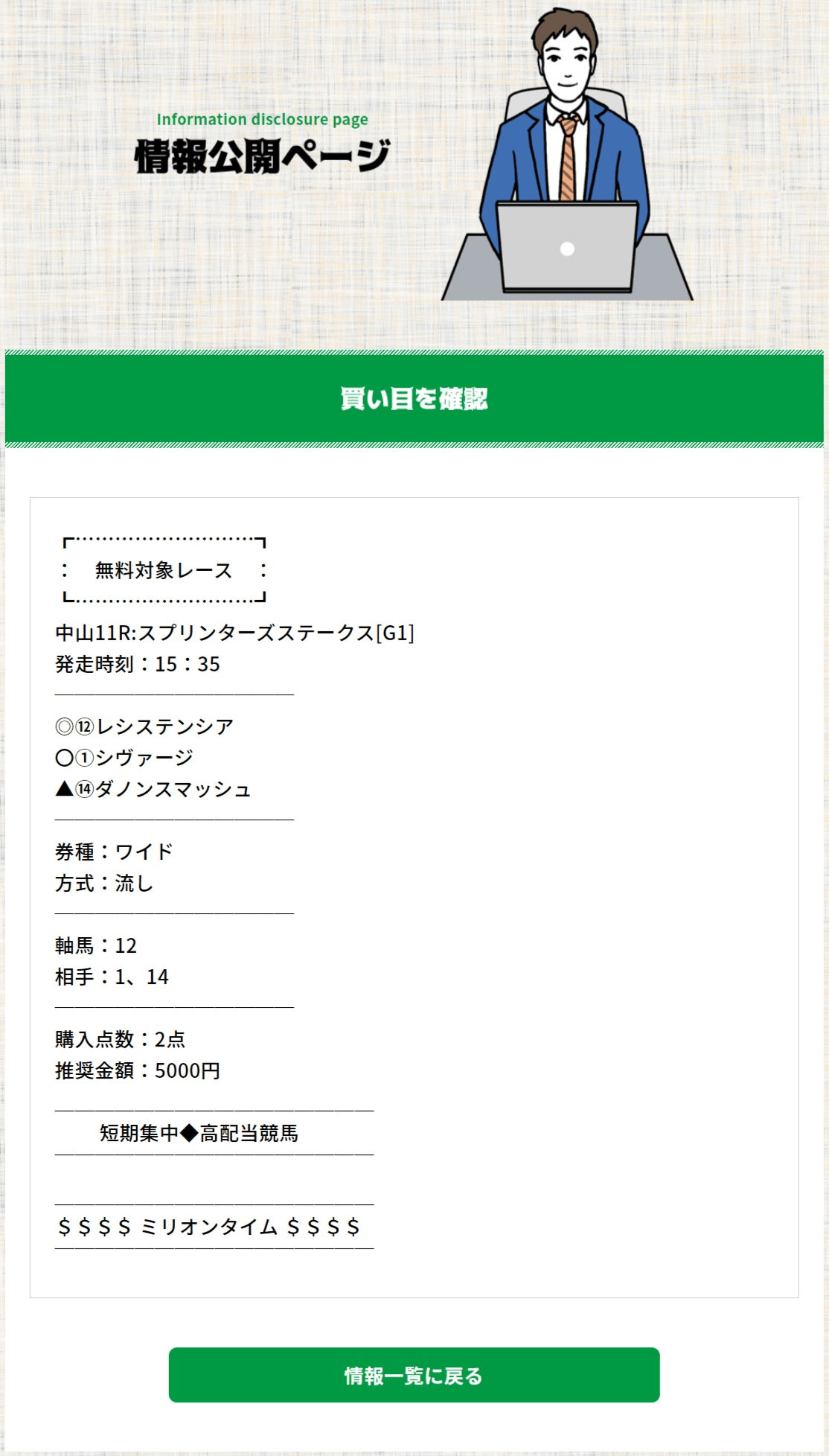 スプリンターズステークスを予想してかなりハズしていたサイトが多いなか、無料情報で6桁的中を生み出した『ミリオンタイム』は勝てる・使える・優良サイトと認定!