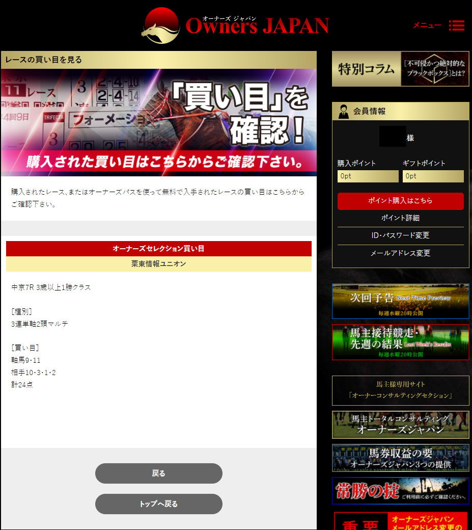 今回ピックアップしてご紹介するのは『Owners JAPAN(オーナーズジャパン)』という、新しいのか、古くからあるのか謎に包まれた競馬予想サイト。