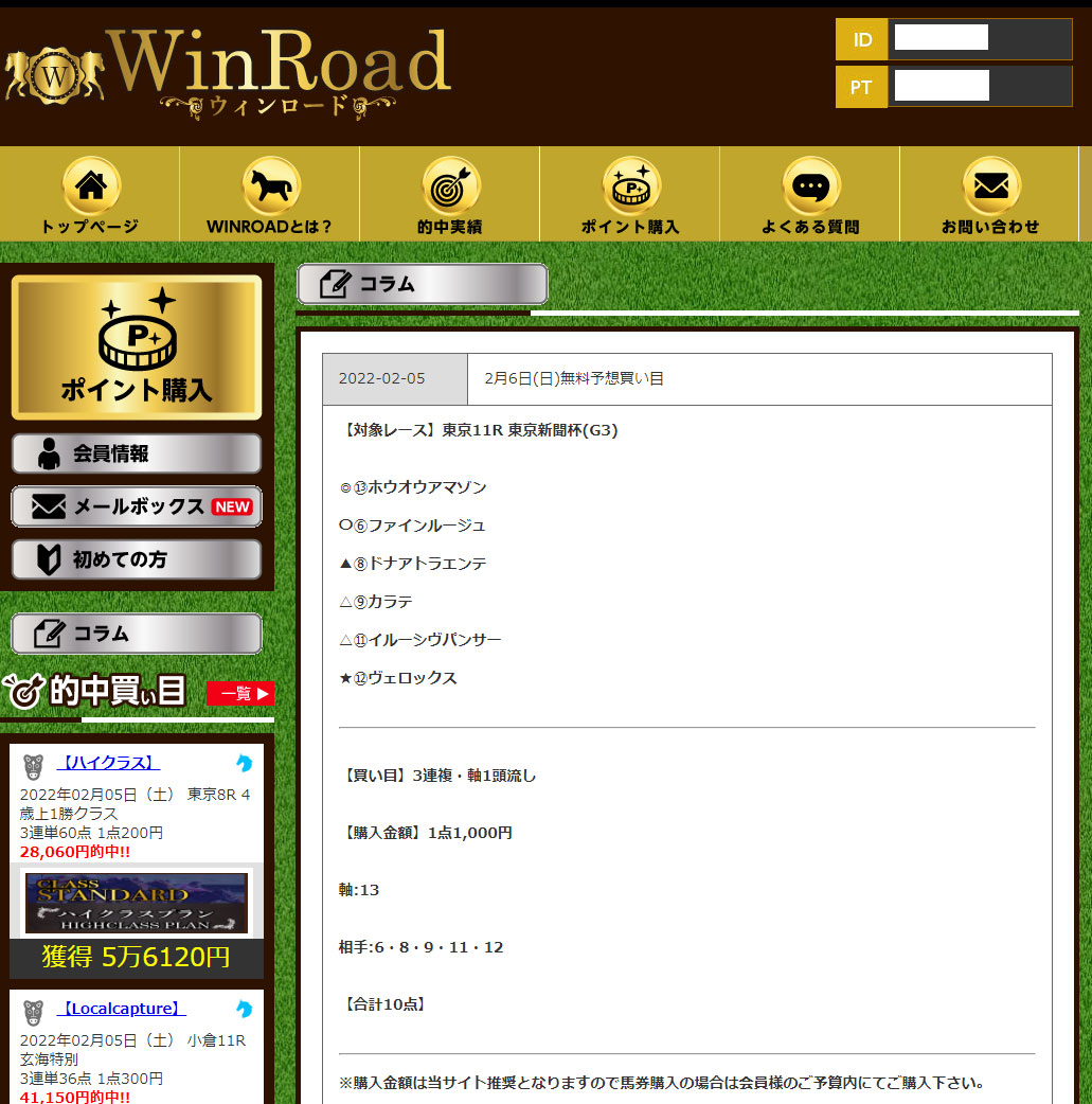 今回検証したのはWinRoadという予想サイトの「無料情報」検証です。