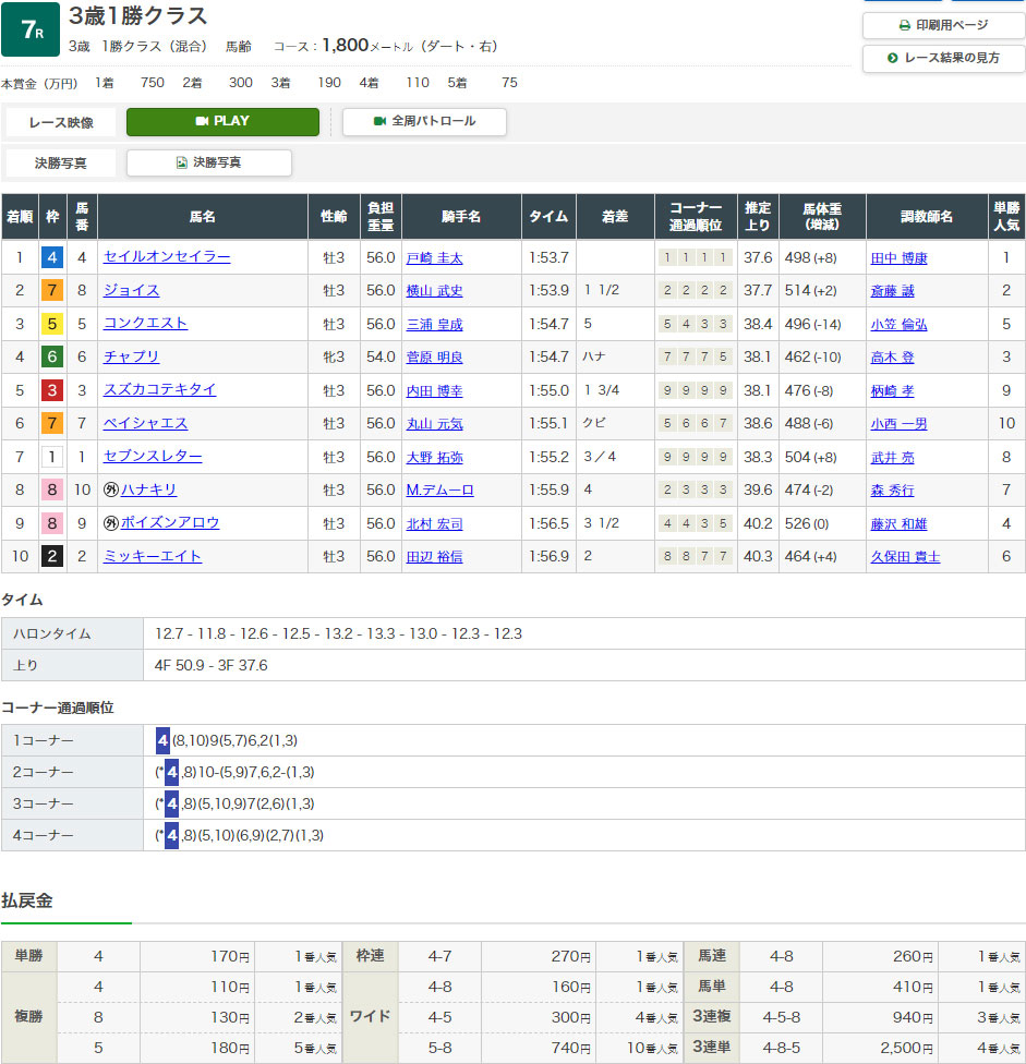 単勝1.8倍の④リッケンバッカーは掲示板にすら入れず!