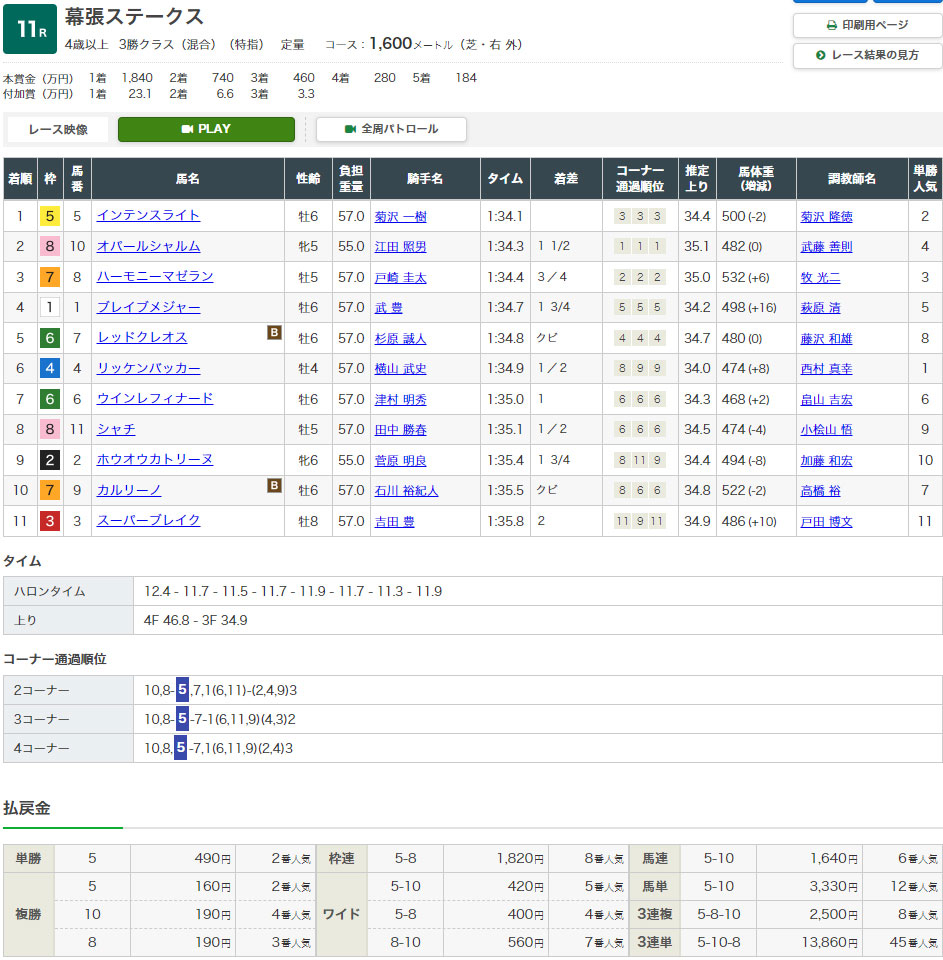 【検証レース②:2/26 中山11R 幕張ステークス】