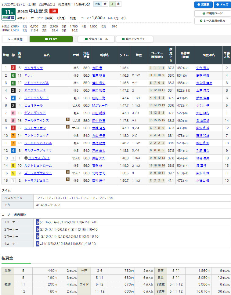 【検証レース③:2/27 中山11R GⅡ中山記念】