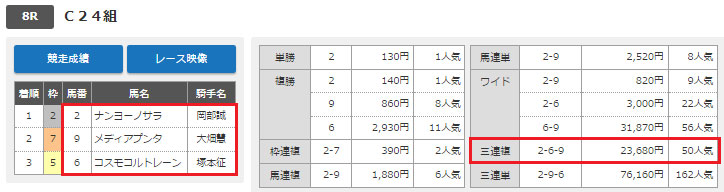 点数は16点で3連単にしてはそこまで点数は多くはないなという印象でした。