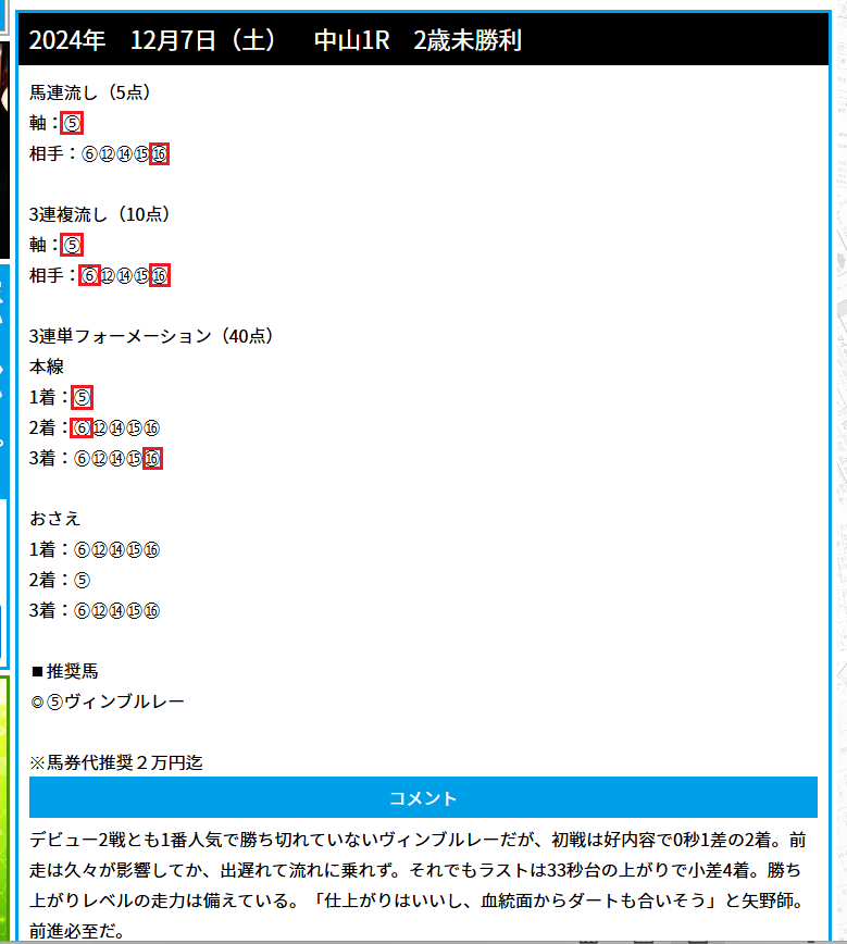 7日(土)朝一1発目のレースから公開された3馬券種全的中!