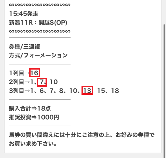 29日(土)中京11Rで無料情報「3連複」的中