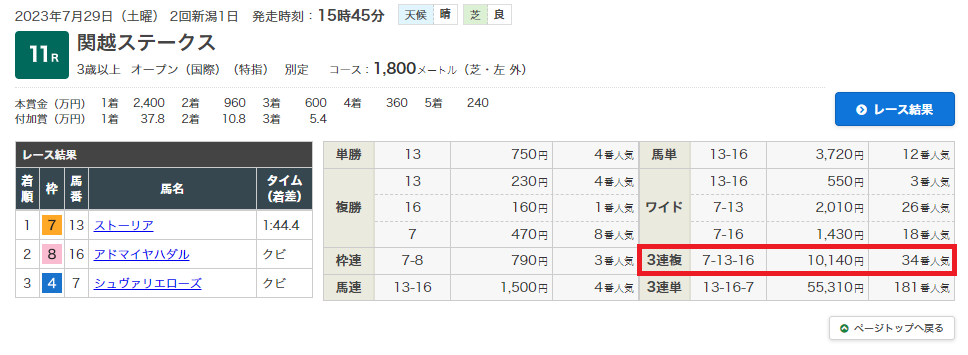 7月29日・新潟11レース 関越ステークス 3歳以上オープン 芝1800m