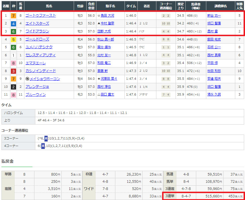8ー4ー7で見事三連単的中!!