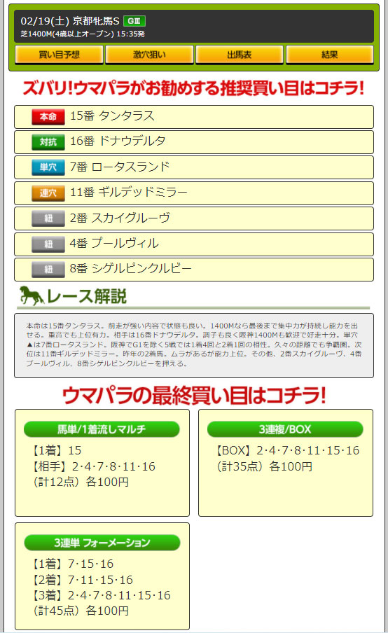公開された予想は…やはり上位人気7頭に印を付け昨日と全く同じ券種と点数にガッカリだ!