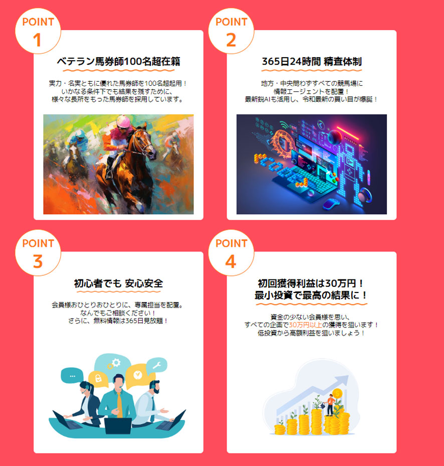 ②各競馬場に情報エージェントを配置し、365日24時間精査体制