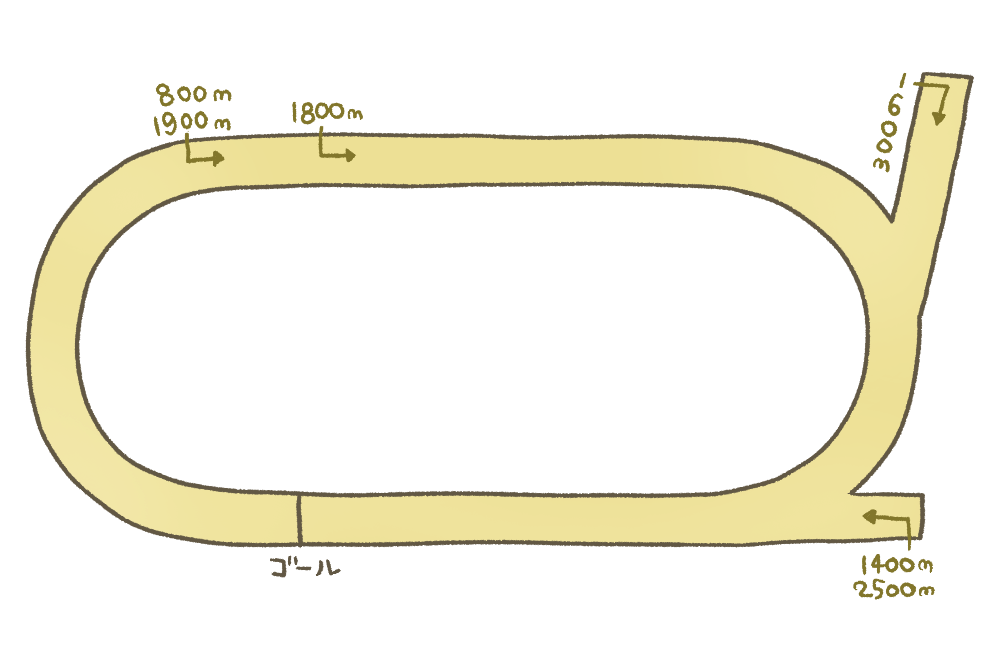 騎手の仕掛けどころが大きく影響するため、比較的荒れるコースとされています。