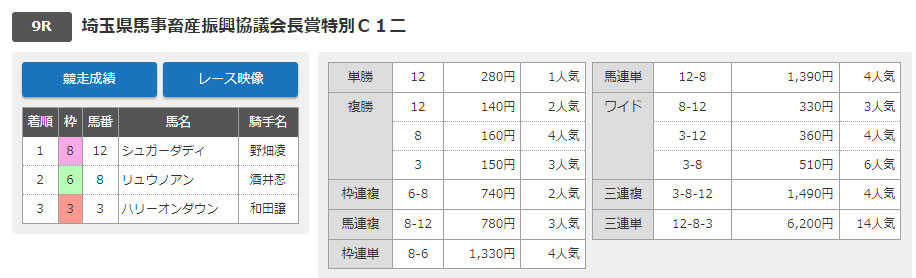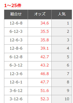 前目にいた馬でそのまま決まりました。12-8-3の買い目があったような気がしますが確認してみると。