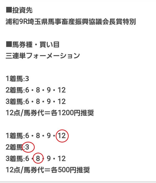 本日地方交流のレースも開催されていて3会場の開催だったのですが、その中でも南関競馬の浦和競馬の予想を公開していました。