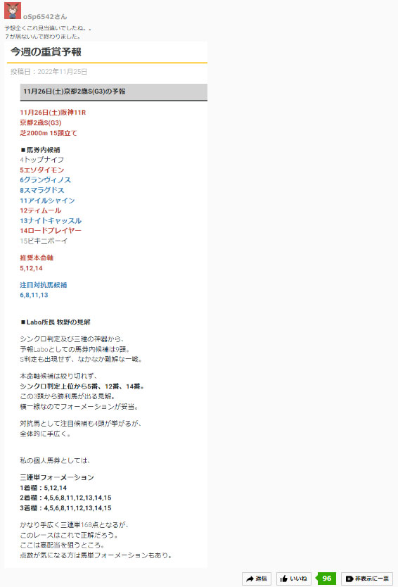 実際に「競馬予想Labo」のクチコミを見てみると26日の土曜日の無料予想は不的中だったようですね。