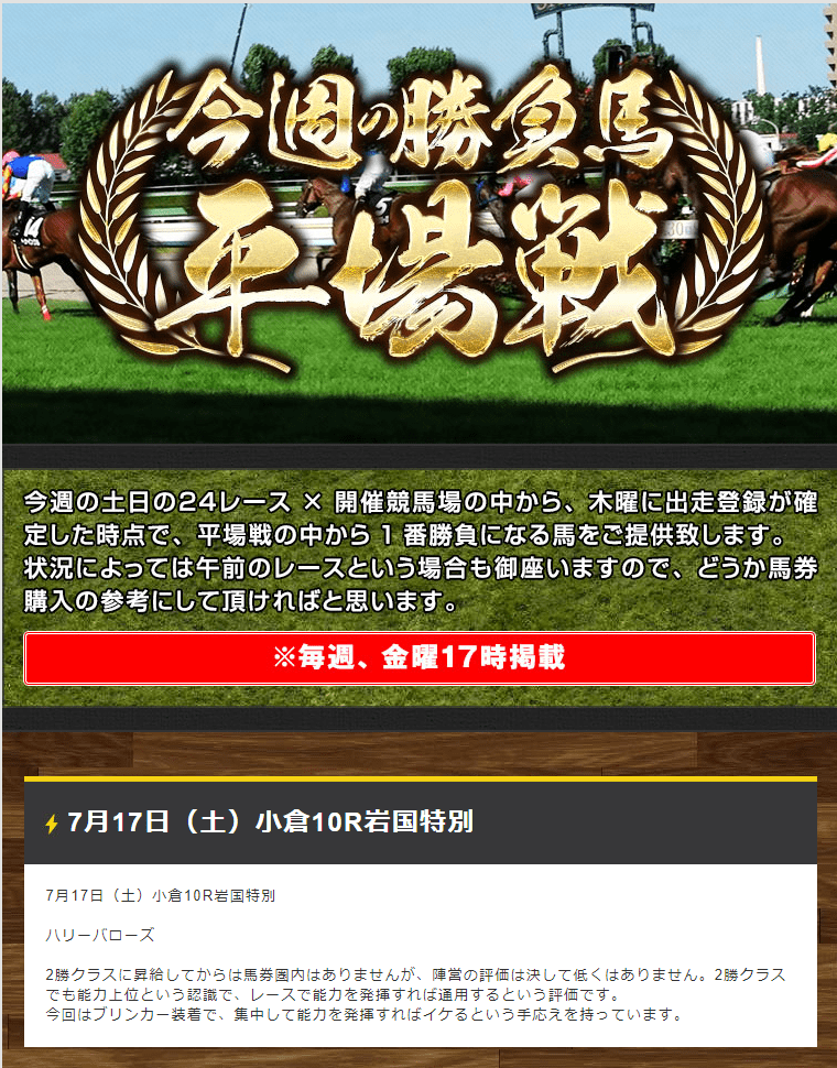 ここは使用前に注意が必要、勝てると言われ参加した3鞍では1レース惜しかったものの結果論だけで言えば 全敗、当たればリピートと考えましたがもう使う事はありませんね。