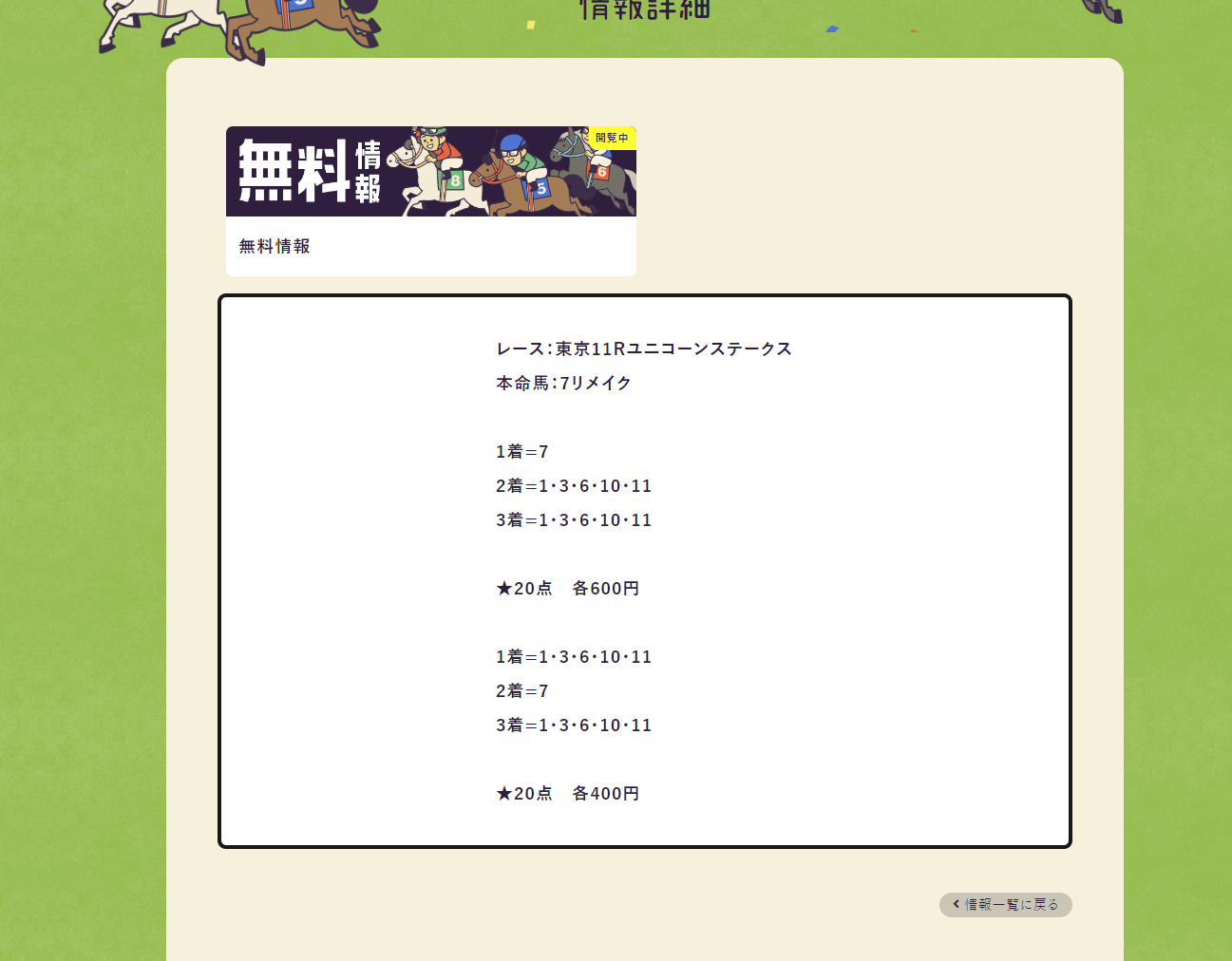 ここの無料情報見て1頭も当たってないんだけど爆笑だよね