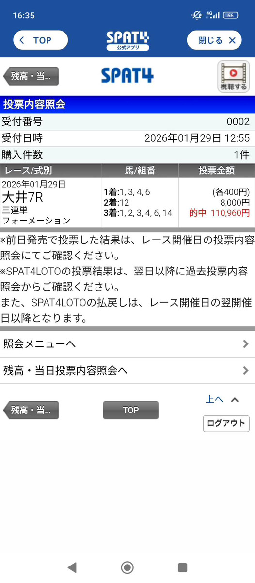他のサイトで結構やられてるので期待はしてなかったけど110960円の的中もらえたのはすごく嬉しい。他の予想にも期待できそう。