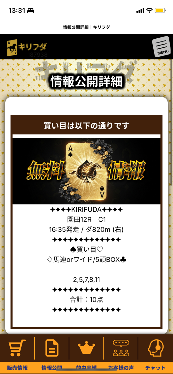 昨日(12/18)の無料予想で2着10番人気の当てて全馬券種で8万700円的中!